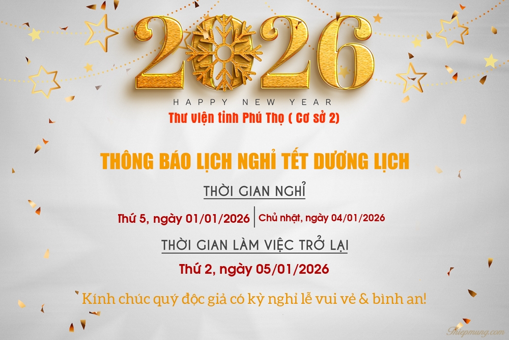 Thư viện tỉnh Phú Thọ ( Cơ Sở 2) thông báo lịch nghỉ tết dương lịch 2026