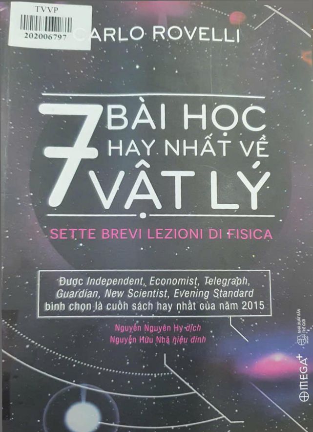 Cuốn sách “7 bài học hay nhất về vật lý” của tác giả Carlo Rovelli, được Nguyễn Nguyên Hy dịch và Nguyễn Hữu Nhã hiệu đính. Nhà xuất bản thế giới, xuất bản năm 2023, kí hiệu: 202006797. Sách hiện đang được phục vụ tại phòng Mượn của Thư viện tỉnh Vĩnh Phúc, mời các bạn tìm đọc!