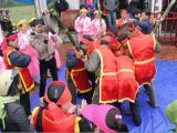 Sáng mùng 7/Giêng, dân làng tụ hội để xếp lễ vật của mình vào kiệu, rồi rước lên công đồng dâng thánh.