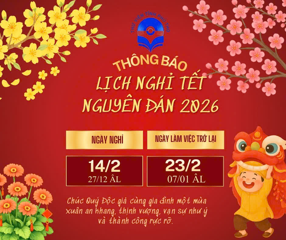 Thư viện tỉnh Phú Thọ ( Cơ Sở 2) thông báo lịch nghỉ tết dương lịch 2026